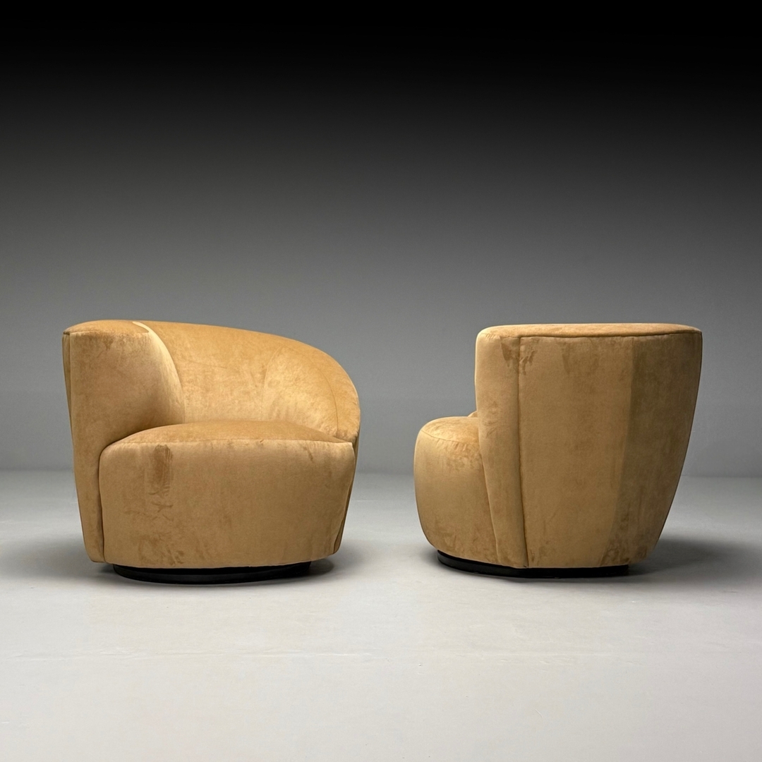 A true retro revival. These velvet gold swivel chairs instantly transport you to a chic 1970s sunken living room. The plush curves, tonal base, and rich hue are unapologetically glam — and we’re so here for it.