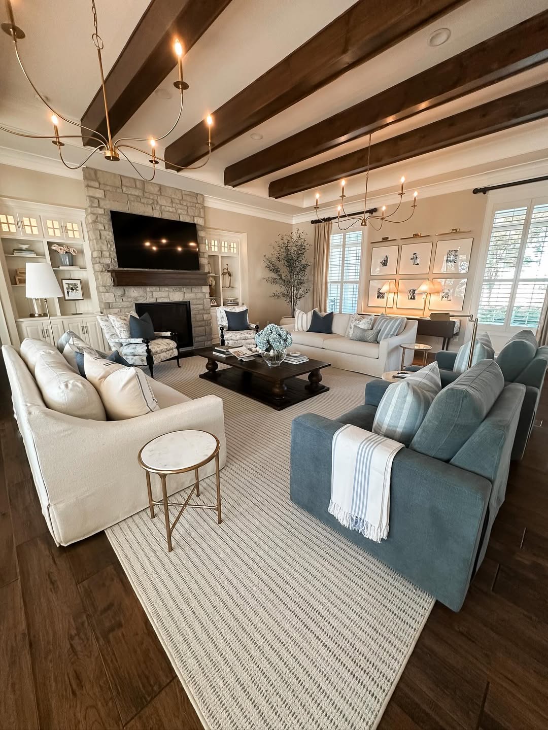 This living room nails that balance between polished and practical. Neutral tones, classic furniture shapes, and thoughtful layout make it feel welcoming without sacrificing style.