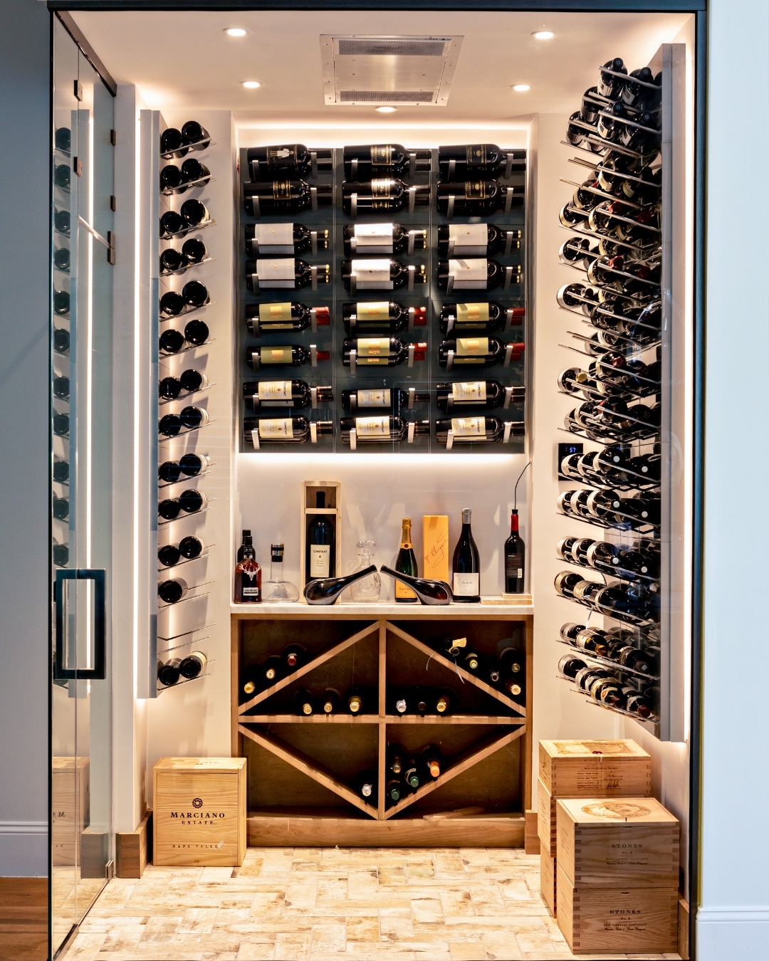 It’s the kind of display that says, Yes, I collect wine. And yes, I also appreciate good lighting, clean lines, and a little drama in my architecture.