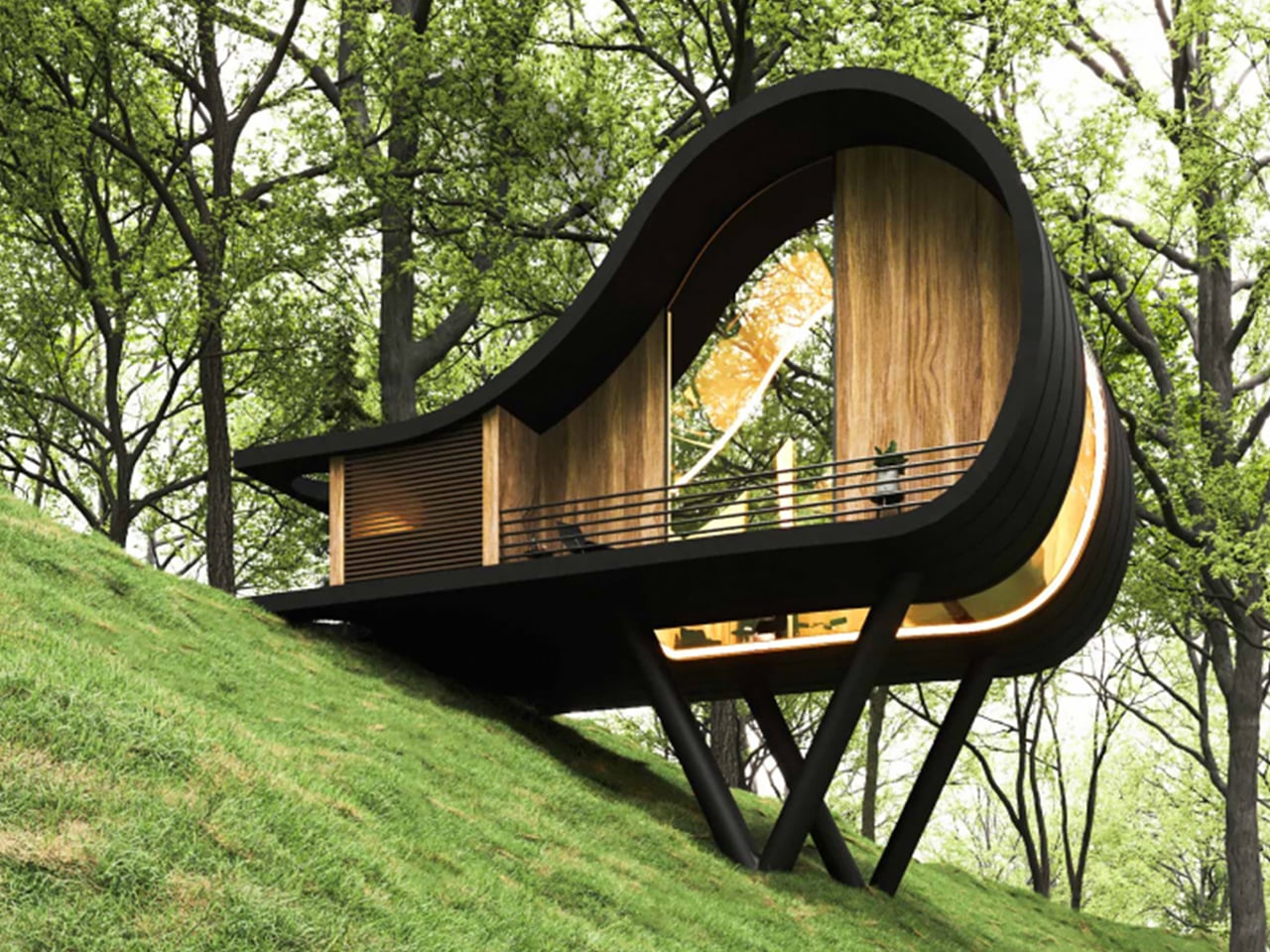 Tiny homes have an unique type of magic, and this cabin records it with a form that feels right out of a storybook, yet strongly rooted in modern-day design. Set on a sloping website, the structure rises naturally from the ground, with its surface area folding upward to form both the exterior and the interior.