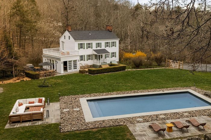 The focal point of this Colonial is really the swimming pool, included in this listing photo, that features its own pool house. Picture: Compass
