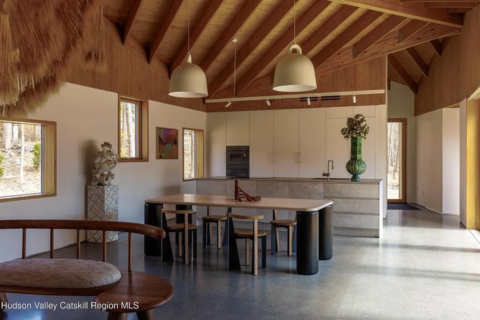 The gunite pool and stone patio area are the stars of the house, which likewise includes a cabana, a pool house with a kitchenette and grill, and a hot tub around the corner. It’s really weekend-y. When you’re dried off, the primary house is a nicely cozy refurbished Colonial. The wide-plank floorings and exposed rafters protect a few of the 1800s charm, in addition to gigantic fireplaces in the living room and the kitchen. Your home is a good size, however, not palatial– 2 bed rooms and 2 baths. The listing includes that there’s ample storage throughout and a “entire house generator.” The sun parlor with French doors that open straight into a stone patio appears like a perfect place to hang out, plus a deck above adds to the outside space. Completely and ridiculously anecdotally, New Paltz appears to be gaining some heat among Brooklyn parents seeking to leave the city. (According to my colleague who understands 3 people presently considering this move.)