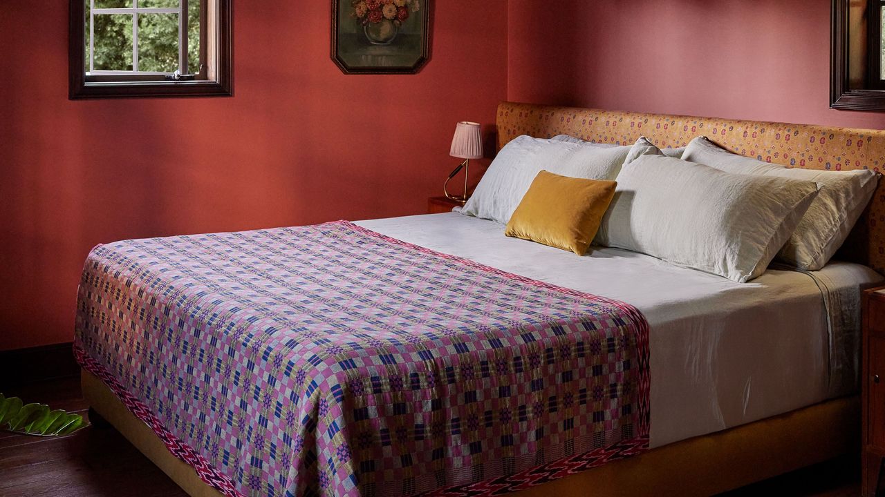 After almost 2 years of usage, Lee says the quilt has been a relied on staple to keep bedside when the temperature levels drop. “The burnt orange color hasn’t faded in time and I have not discovered any pilling, which is something that can occur with this kind of cotton product,” she includes.