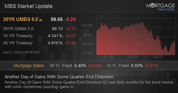 Off the very best levels after quarter-end rebalancing trades. MBS up only 10 ticks (.31) and 10yr down only 3 bps at 4.322