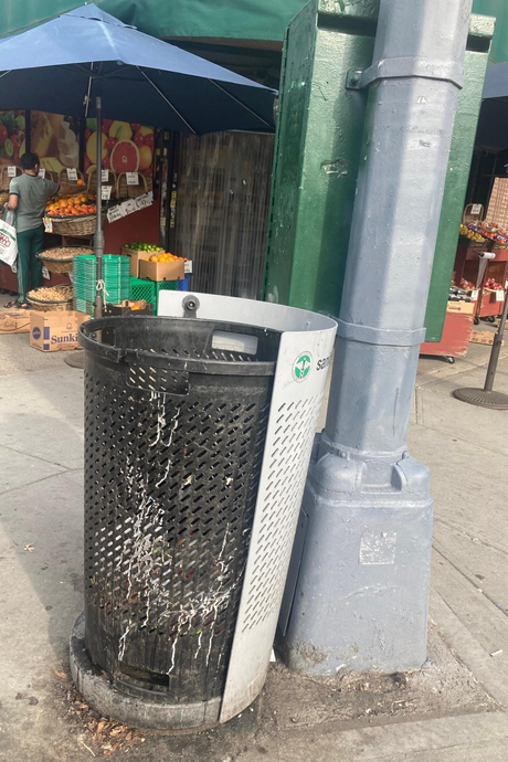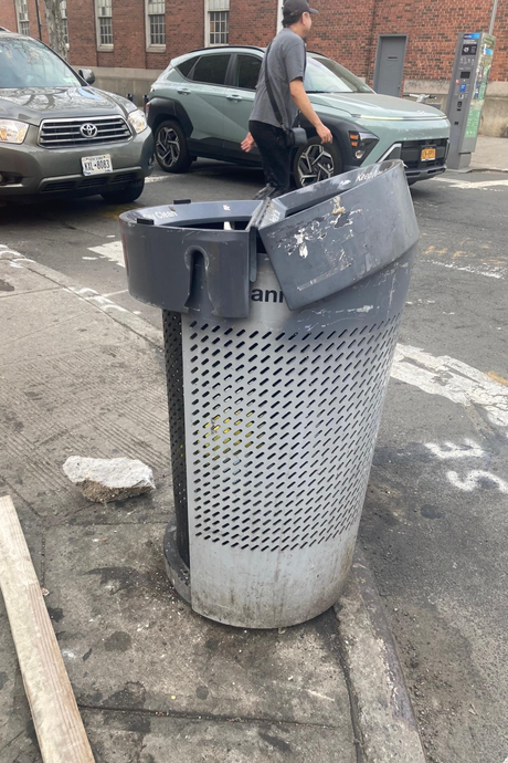 to let go. Photo: Christopher Bonanos An associate of mine in Jackson Heights spotted 4 broken Better Bins in between his home and the train, all in the space of six blocks on 37th Avenue.