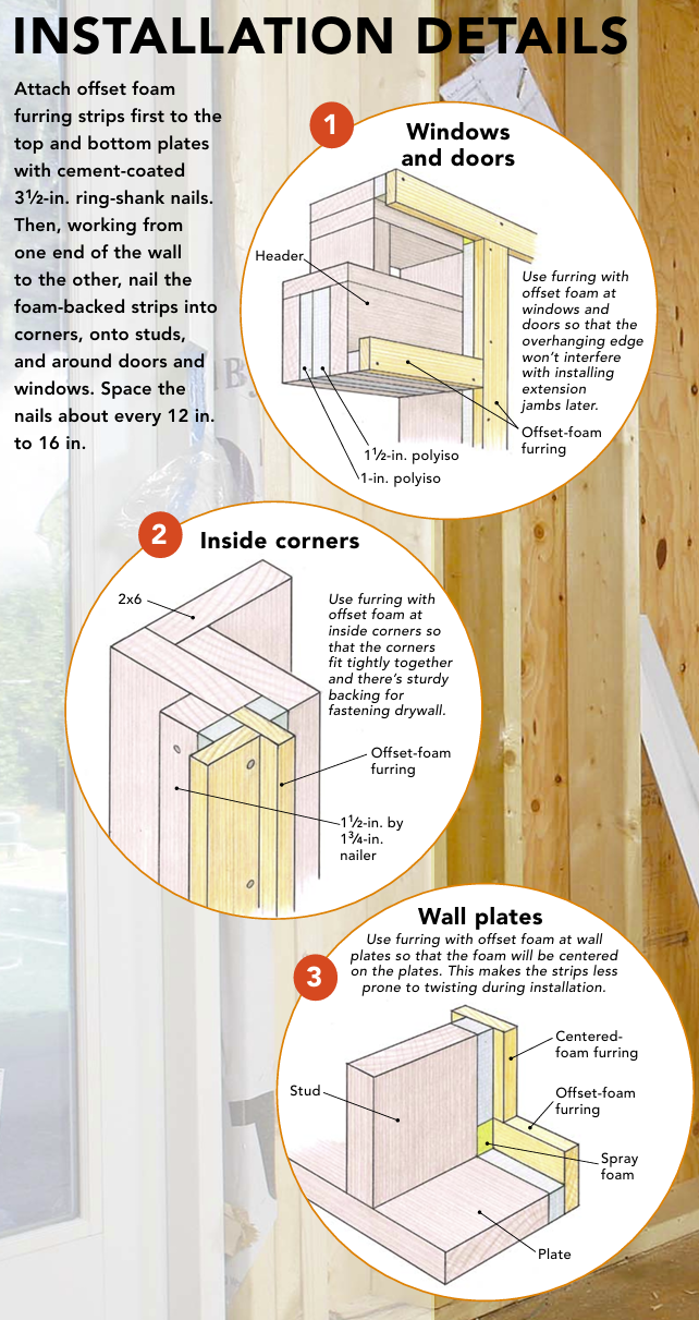 You may say I’ve always been ahead of the curve as far as structure performance goes. When I began building in 1977, my homes had 2 × 6 walls and R-19 insulation, while code-built homes had 2 × 4 walls with R-11 insulation. Other contractors, subs, and suppliers stated I was crazy for installing more insulation than the building code required, however I’ve constantly believed that building energy-efficient homes made best sense. In my mission for performance and comfort, I tried just about every high-performance wall assembly there was, all of which seemed excessively complex and pricey. Then one day 12 years back, I asked myself, “What if I fur out the interior wall with strips of stiff foam and strapping?” I reasoned that the foam strips would attend to thermal bridging, include thickness to the wall to accommodate high-density fiberglass batts, and expense less than alternative methods. I have actually been developing my walls this way since.