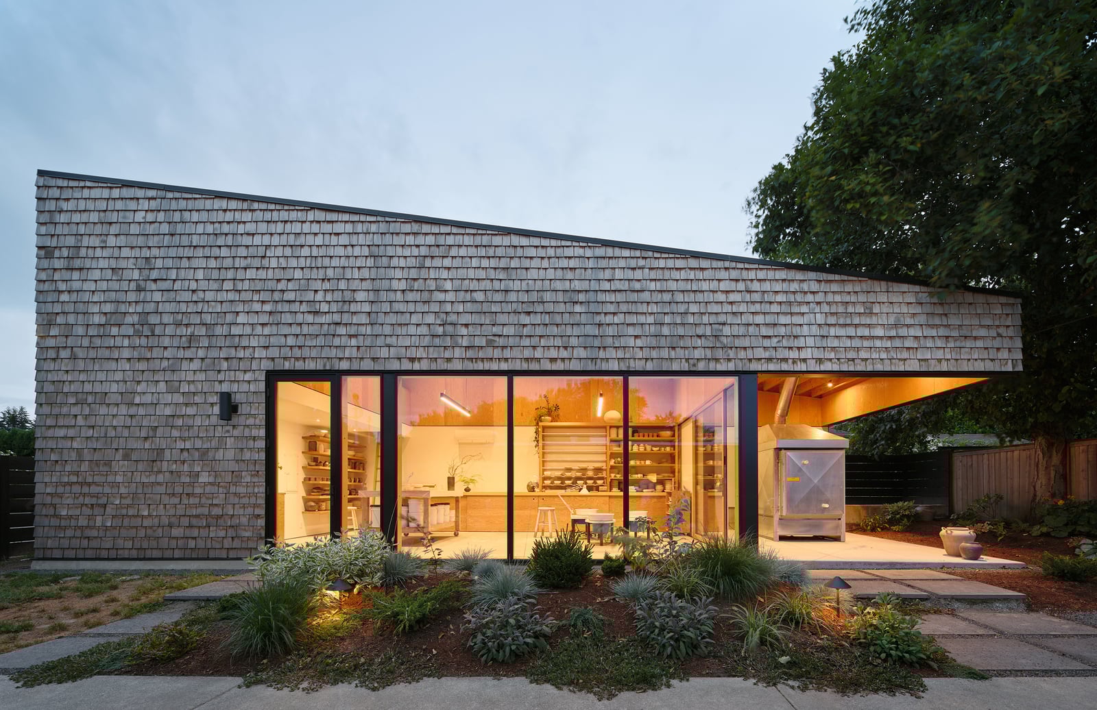 Product shifts strengthen the architectural composition. White walls at the lower level supply a neutral surface area for displaying ceramics and for teaching demonstrations, while warm wood surfaces above echo the geometry of the roofing and cantilevered structure. Linear up and down lighting incorporated within the wood soffit improves the environment throughout Seattle’s darker winter season. Built on a modest budget through a collaborative effort that included the client, specialist, and buddies, the studio now runs as an area center hosting classes, pop-up shops, communal suppers, and innovative gatherings along with its main role as a ceramics workshop.