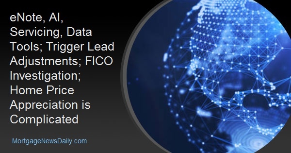 eNote, AI, Servicing, Data Tools; Trigger Lead Adjustments; FICO Investigation; Home Price Appreciation is Complicated