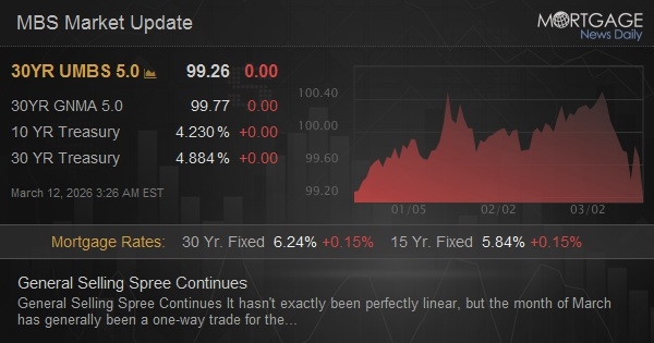 It hasn’t exactly been completely direct, but the month of March has usually been a one-way trade for the bond market. In less than 2 weeks, 10yr yields are up from 3.95 to 4.22+ with no justification from econ information. Today was another example as CPI can be found in right in line with forecasts. In spite of that apparently decent news, yields rose progressively throughout the morning, and we can’t really blame oil prices today (even if greater energy costs are presumed to be quite on the bond market’s mind). Newswires the war costing $11bln recently likewise don’t assist, especially on a day where bond traders are already thinking of Treasury supply due to the auction cycle. MBS sold proportionally in the early morning and underperformed in the afternoon, hence producing the highest 30yr rates in over a month and among the most significant day-to-day jumps we’ve seen in a while.