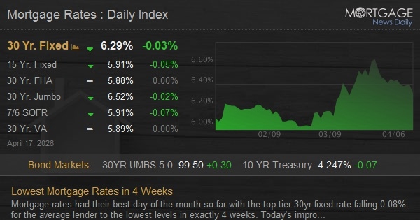 Mortgage rates had their finest day of the month so far with the leading tier 30yr set rate falling 0.08% for the typical loan provider to the most affordable levels in exactly 4 weeks.