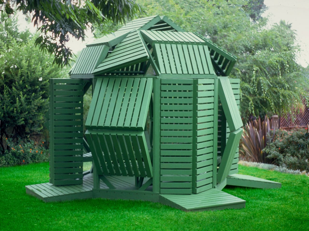 Given its size and type, a building authorization is not likely to be required in numerous jurisdictions, which eliminates among the more tedious barriers between an interesting design and an actual garden. Jantzen has spent decades proposing architecture that responds dynamically to its residents, much of it staying on paper. This pavilion is among the cases where the idea got developed, and the outcome holds up at close quarters. The slatted wood is truthful about what it is, the green paint ties the structure to the garden without attempting to disappear into it, and the hinge system does exactly what it promises.