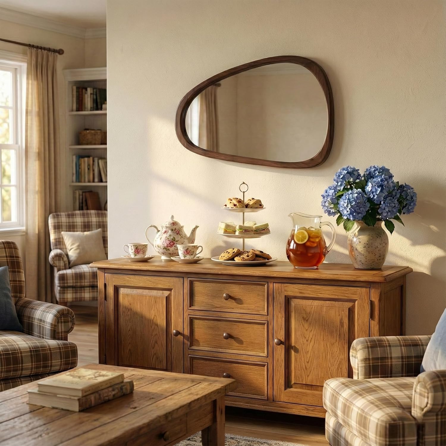 Shop at Amazon Every space requires a focal point, and an asymmetrical organic mirror deals with that very well. Hang it over an entrance console or above your cabinet, and set it with easy decoration to allow those subtle curves to carry the minute.