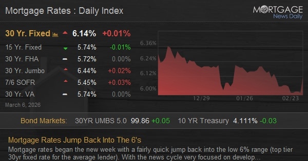Home loan rates started the new week with a fairly quick jump back into the low 6% range (top tier 30yr fixed rate for the average lending institution). With the news cycle very focused on developments in Iran, the majority of protection attempts to correlate geopolitical events with market movement.