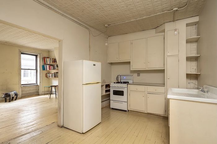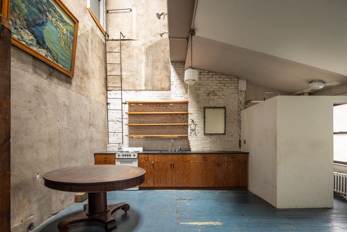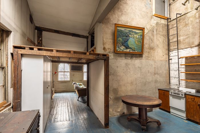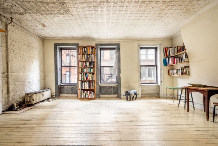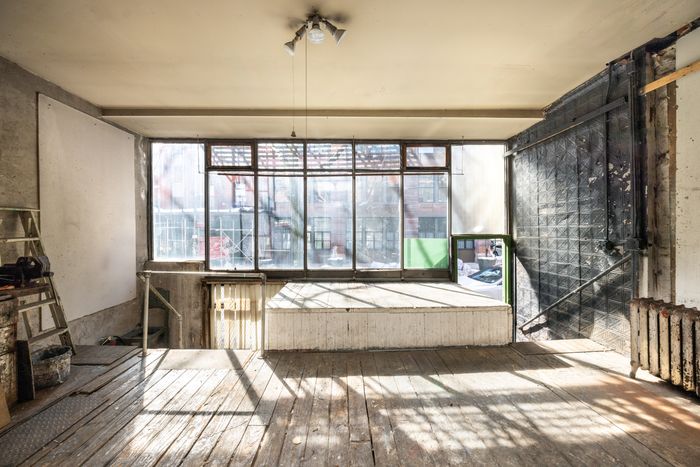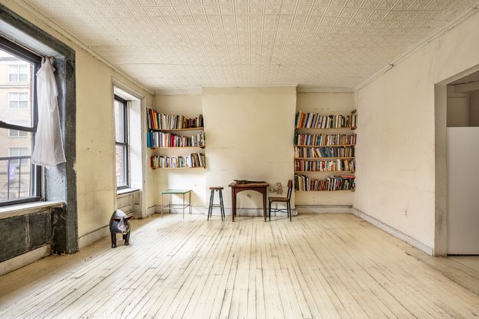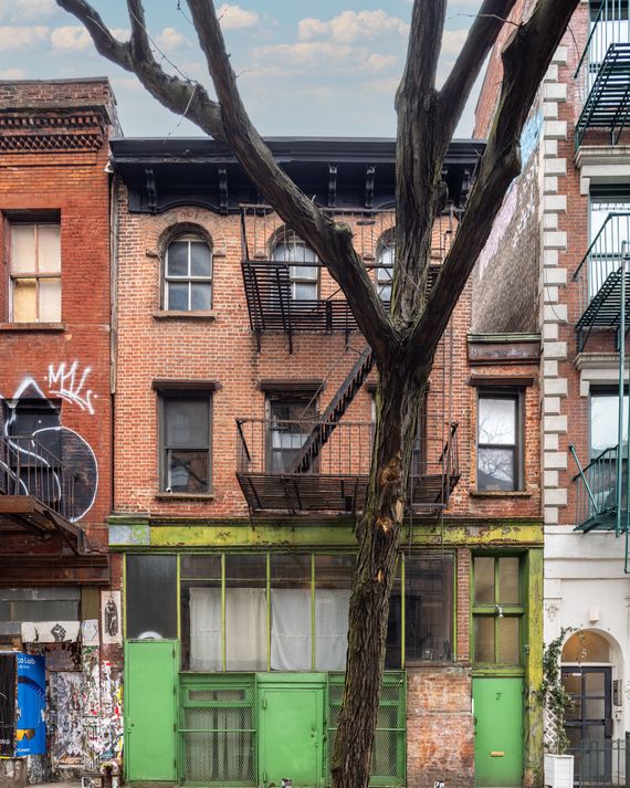 Leaf died in 2024, and their home is now on the market for the first time since they arrived in the late 1970s as renters. The three-story brick building looks like it might have been squeezed into a busy row. But it was actually one of the block’s earliest, an 1817 home built on “what was essentially still a field” by a prominent owner (James Roosevelt, great-grandfather of FDR). As the city grew around it, tenants included a laundry, decades of fur dealers, and a stationery shop. Upper floors served as workspaces, then as the rooms of an SRO, with bedrooms and bathrooms opening directly off the staircase.