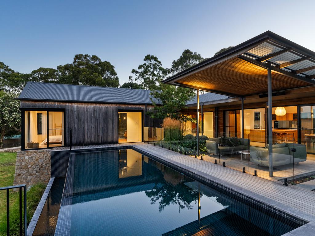 46 Smokes Hill Rd, Summertown. Supplied The home uses some 265sqm of internal living space and has 4 bedrooms, open-plan living, a wine space, a rumpus room, a studio, a removed shop space and a gleaming infinity swimming pool.
