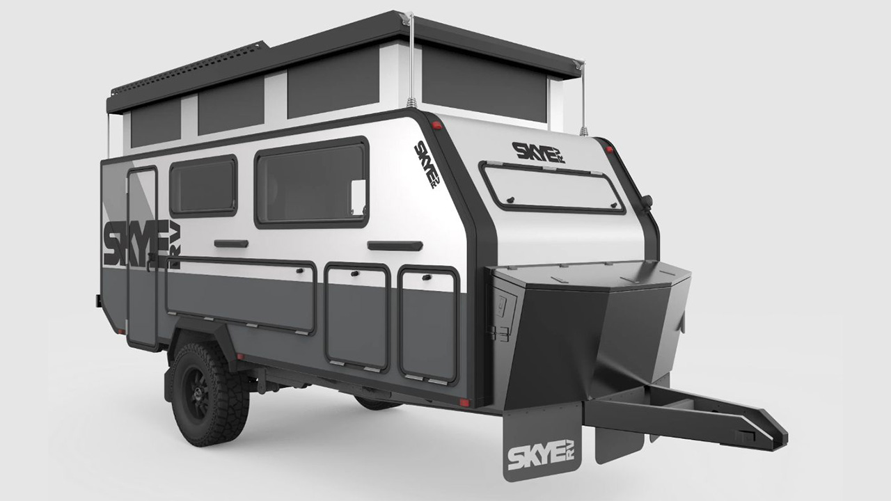 Australia-based Skye RV has rapidly progressed into a high position in the hybrid camper market. The SkyeRV 14-00 hybrid trailer is a great example of its elegant yet off-road capabilities. It is an attentively crafted hybrid camper that selects composite fiberglass construction to make a lightweight and durable structure. The essential emphasize is a full electric pop-top roofing system, which can be raised to create more interior headroom when camping and decreased for much easier towing.