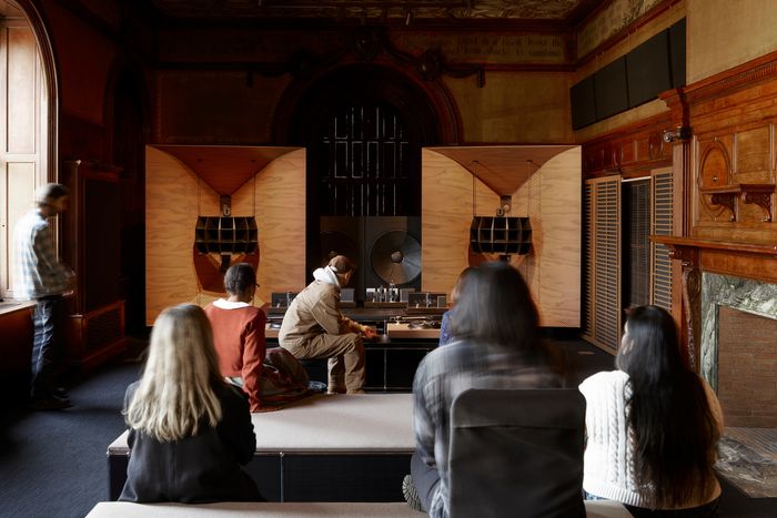 Listeners in Devon Turnbull’s HiFi Pursuit Listening Room Dream No. 3 at the Cooper Hewitt. Photo: Mark Waldhauser
