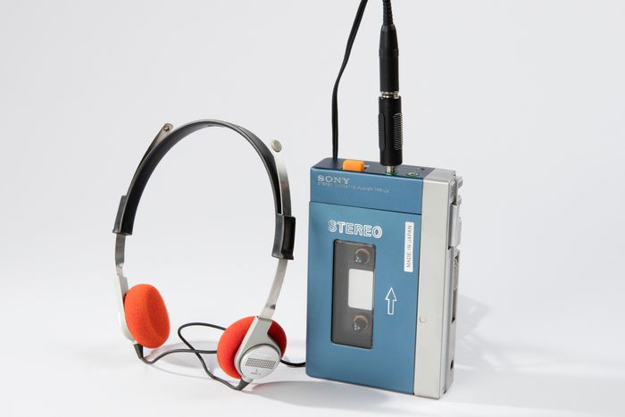 From left: Mario Bellini’s Pop Automatic Record Player from 1968. Photo: Katherine Du TielWalkman cassette player and headphones from 1979, designed by Akio Morita and Kozo Ohsone, manufactured by Sony. Photo: Matt Flynn