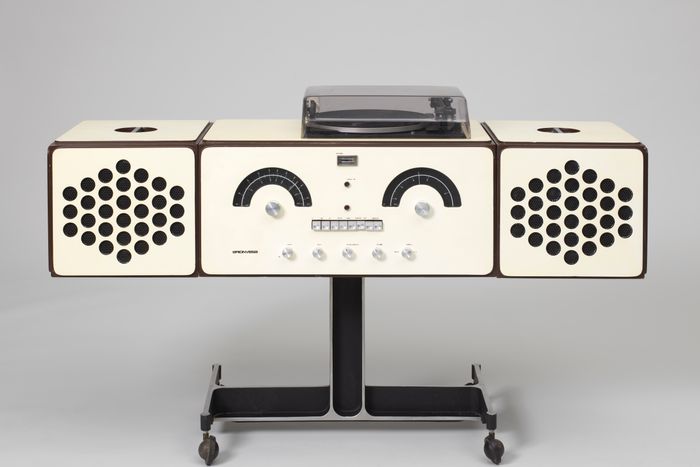 From top: RR-126 Radio-Phonograph from 1965, designed by Achille Castiglioni and Pier Giacomo Castiglioni for Brionvega, S.p.A. Photo: Matt FlynnStere… From top: RR-126 Radio-Phonograph from 1965, designed by Achille Castiglioni and Pier Giacomo Castiglioni for Brionvega, S.p.A. Photo: Matt FlynnStereo Chest from 1973, designed and made by Wendell Castle. Photo: Ellen McDermott