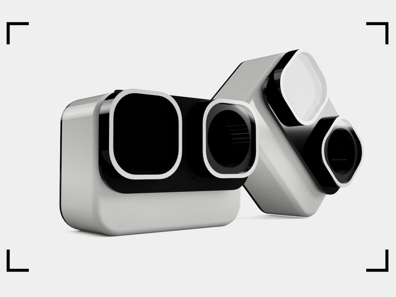 The panda referral is apparent and, more importantly, immediately likable. Two large “squircle” apertures dominate the front, one housing the lens and the other a screen, arranged side by side like a pair of wide-set eyes. The body is white with a matte finish, and the front panel is glossy black. That contrast checks out less like a colorway decision and more like a character, which is completely the point.