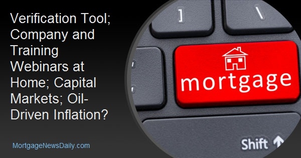 Verification Tool; Company and Training Webinars at Home; Capital Markets; Oil-Driven Inflation?