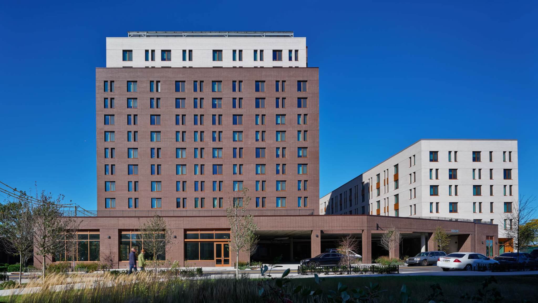 The external facades of the buildings are outfitted in a variable brick mix, while the interior ones are lined in with solid cream-colored brick. (Chris Cooper/Arch Explorer/Dattner Architects)